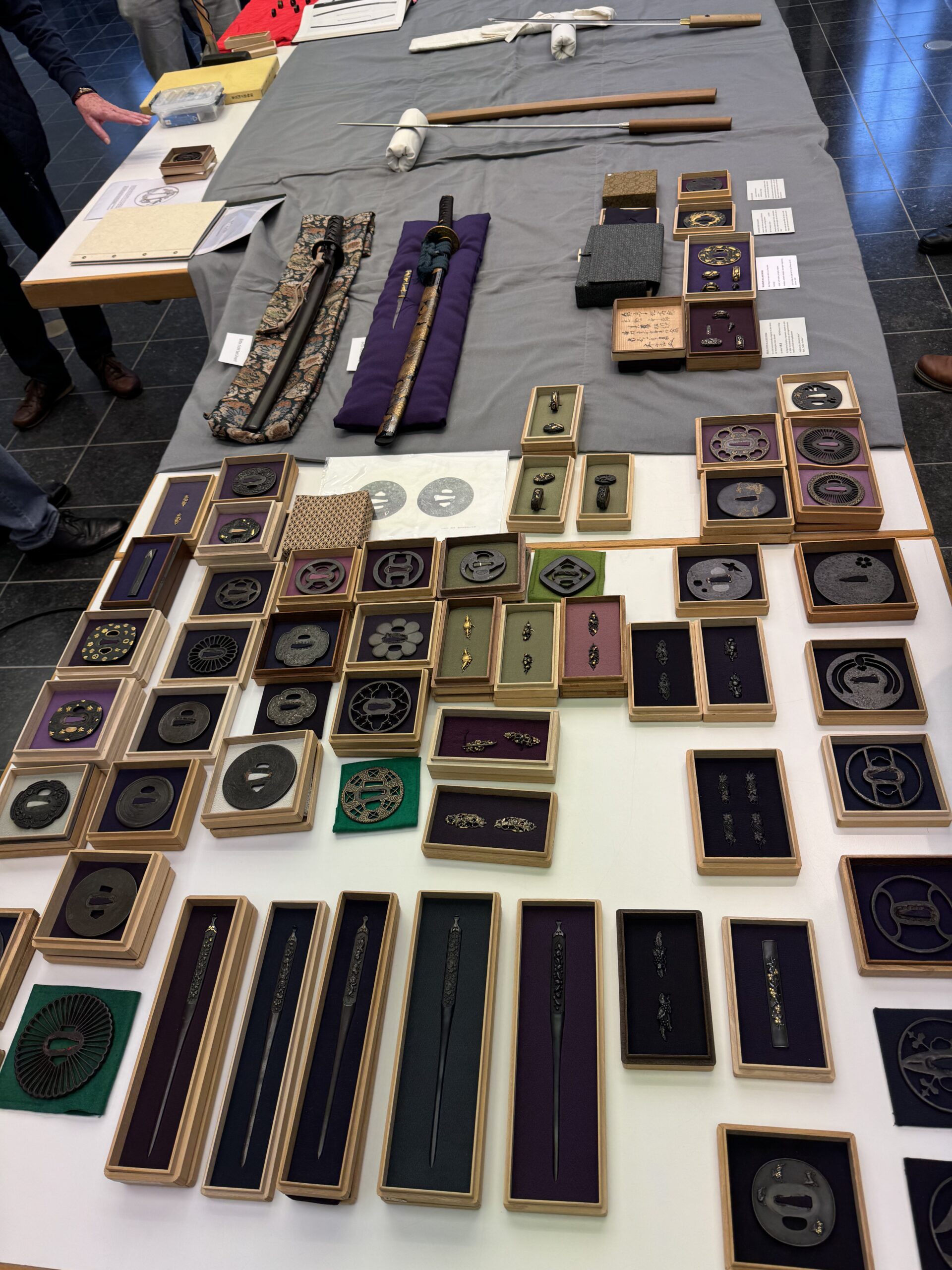 The subject of the meeting was tosogu from the Kamakura to Momoyama periods. The topic was started by structuring and explaining the styles and schools from this period. A particularly valuable aspect of the lecture was that the content was always conveyed in connection with the exhibited pieces. The breadth, quality, taste and sheer quantity of objects we were able to view at this meeting are rarely seen! Here are some individual highlights: