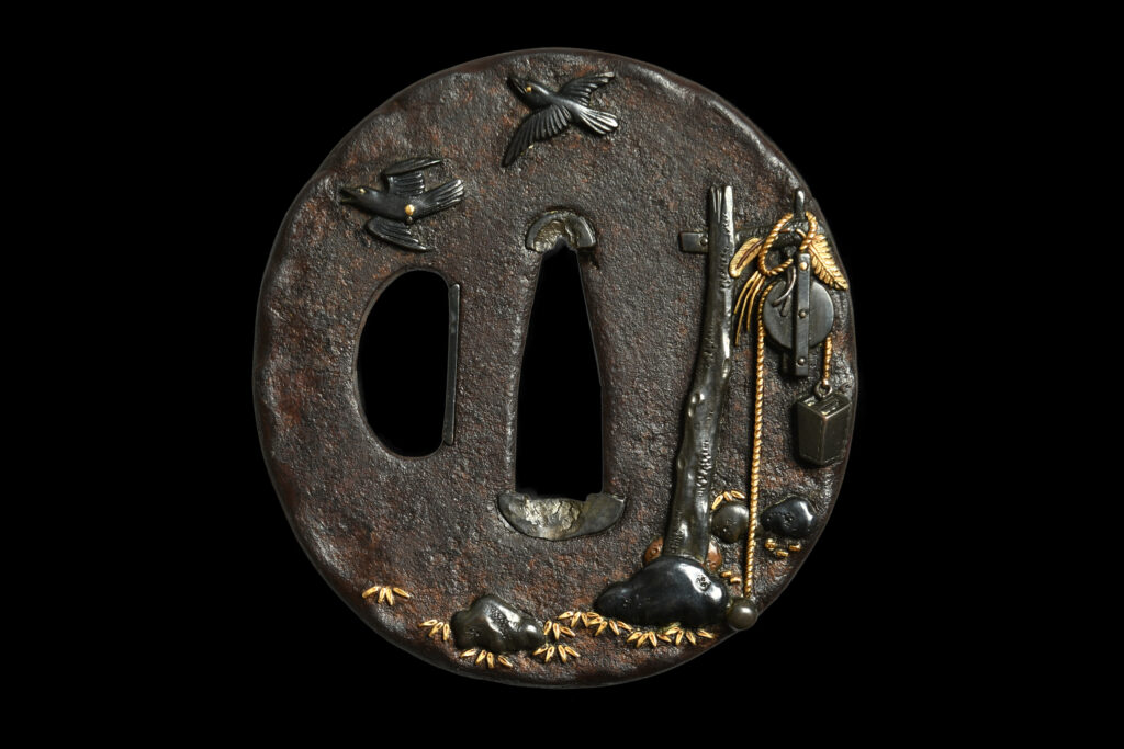 - Umetada – Budō-mon no tsubaTsuba: Umetada “Budō-mon no tsuba” Signature/mei: Umetada Material: shakudō ground, various soft metals Era/jidai: Edo… Read more: Umetada – Budō-mon no tsuba